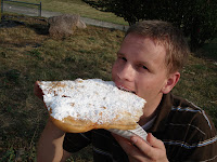 The day before the exciting un-bowling trip we went camping with the Hovermales. D.J. being the scoutmaster that he is took us on a nice long hike that night. It really was a nice hike, but we ended up setting up camp in the dark. We were "primitive camping" so of course we didn't have any bathrooms. When it was time for bed (about 11 or so) Casey and I decided that rather than use some unsuspecting bush we'd go use the bathrooms at the family campground. We were given directions and set off on our journey that was only supposed to be like 5 min. We found ourselves out in the pitch black "hollar" all by ourselves without cell service. Wahoo. So even though I'd like to say I'm grown up now... really I"m not. Our girly nerves and over active imaginations really did begin to get the best of us. Thankfully we ALWAYS have an atlas (okay two or three) in our car and were able to find our way out to the highway, lights, and a gas station. When we asked the attendant how to get back to the campground she looked at us like we were crazy and asked if we were really going out there at that time (it was probably around midnight)of night by ourselves. I think she thought we were a couple of crazy reckless teen-age girls looking for trouble. The scary part was this weird guy who asked us where we were going. We hi-tailed it out of there as fast as we could hoping the guy wouldn't come after us. Needless to say he didn't and we lived to enjoy a super yummy breakfast and an exciting non-bowling trip.